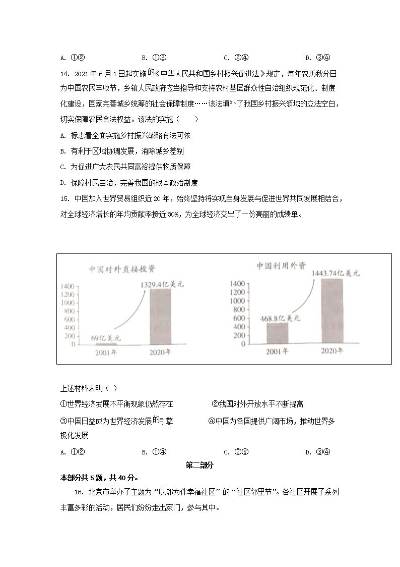 【文档名称】 2021年北京中考政治试题及答案(Word版).doc