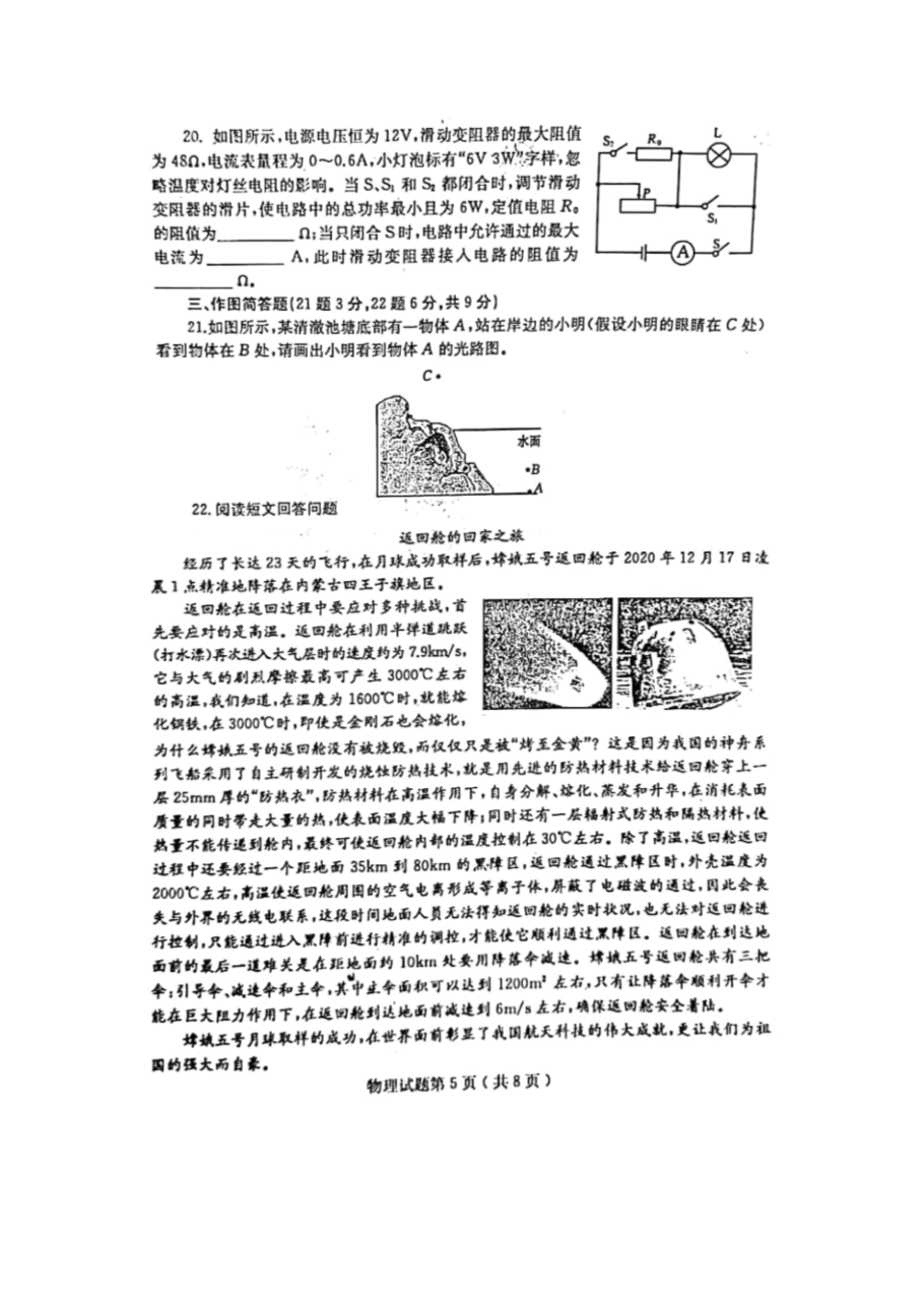 【文档预览】 无忧考网整理发布2021年山东省烟台市中考物理真题(图片版),前五页预览如下: