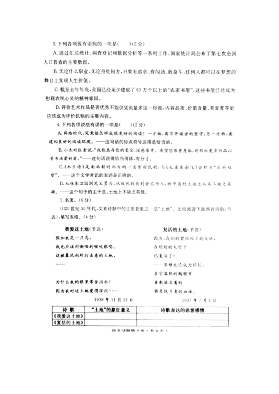 【文档预览】 无忧考网整理发布2021年山东省烟台市中考语文真题(图片版),前五页预览如下: