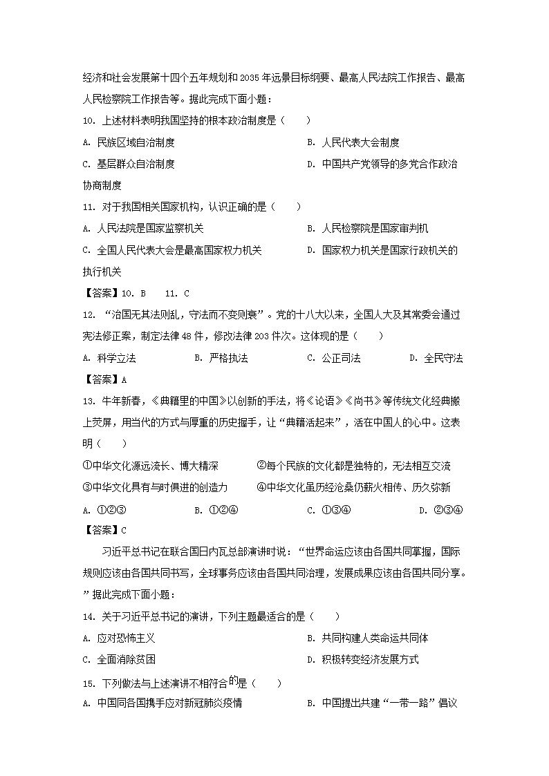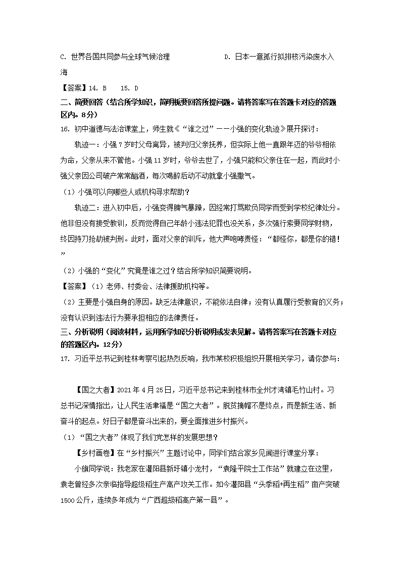 【文档名称】 2021年广西桂林中考政治真题及答案(Word版).doc