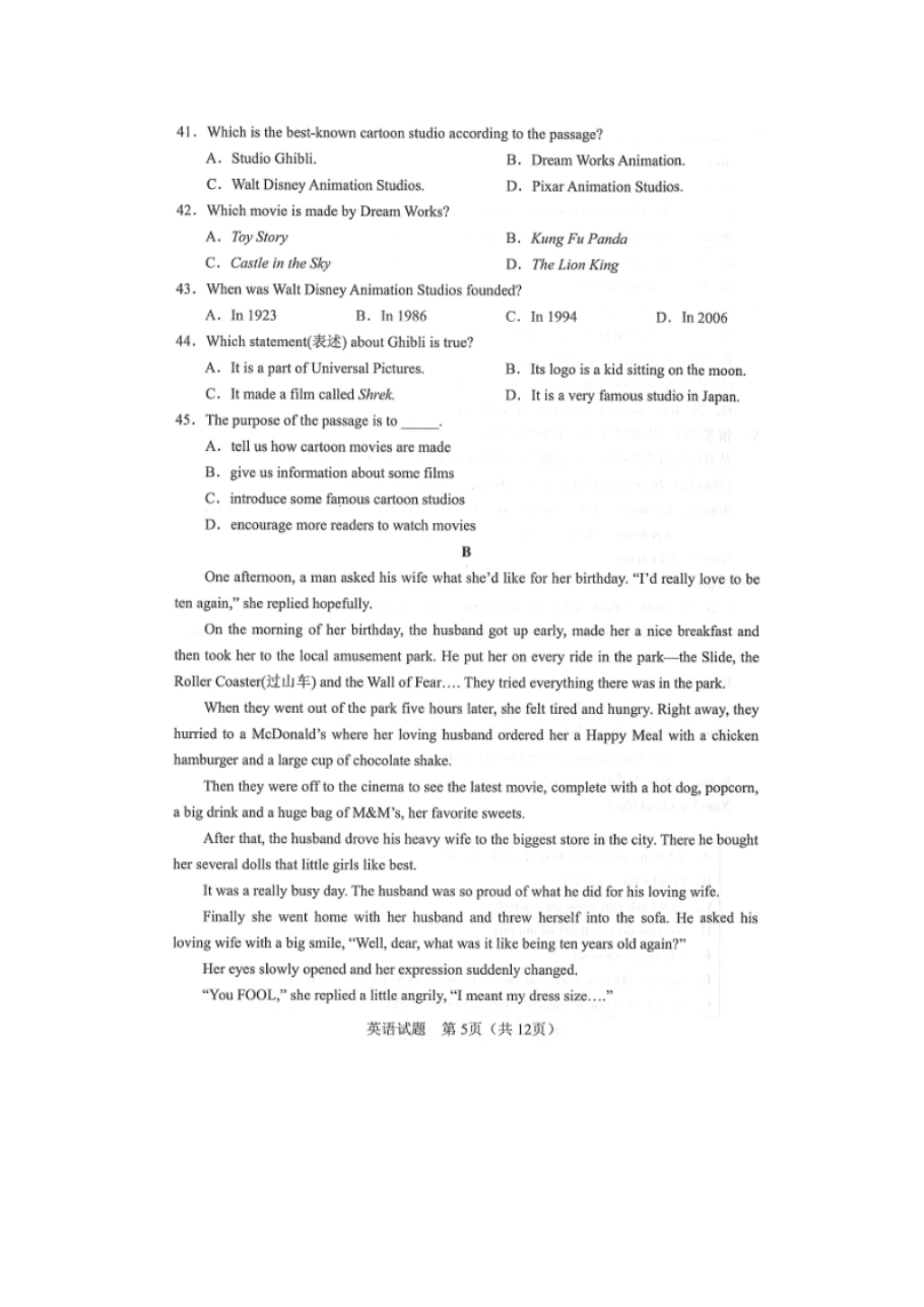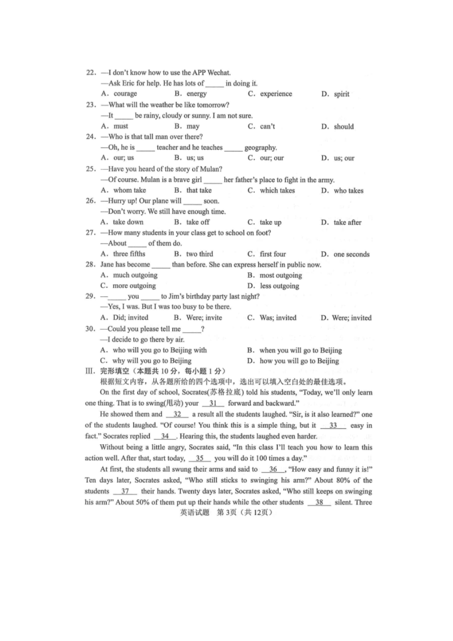 【文档预览】 无忧考网整理发布2021年辽宁省朝阳市中考英语真题(图片版),前五页预览如下: