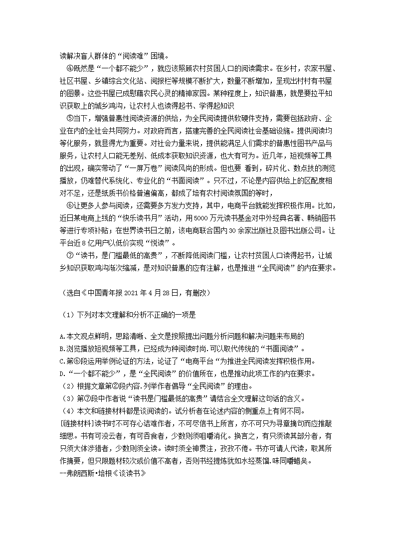 【文档名称】 2021年江苏省宿迁市中考语文真题及答案(Word版).doc