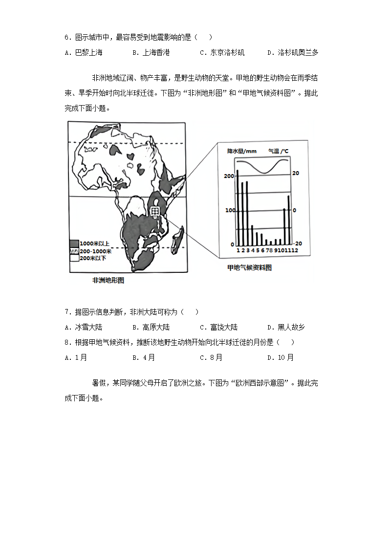 【文档名称】 2021年宁夏石嘴山中考地理试题及答案(Word版).doc