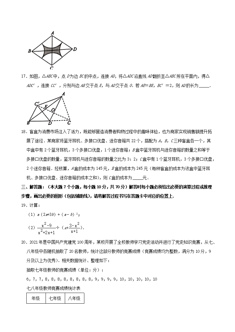 【文档名称】 2021年重庆黔江中考数学真题及答案(B卷)(Word版).doc