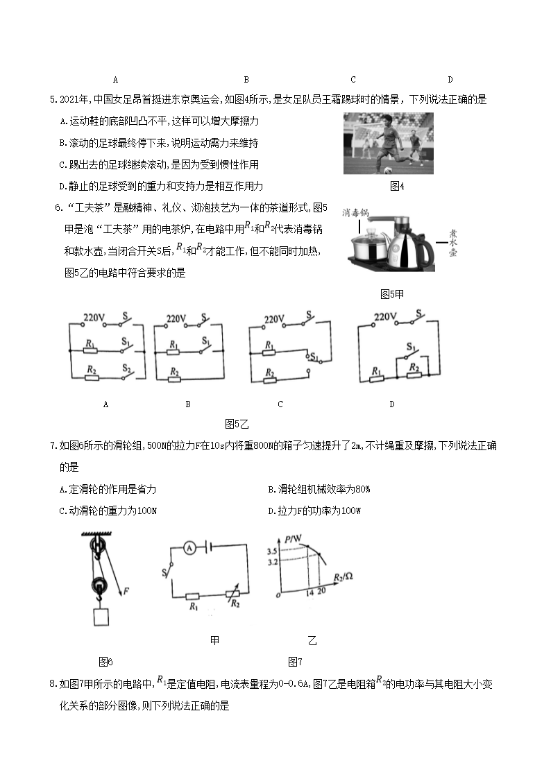 【文档名称】 2021年重庆黔江中考物理真题及答案(A卷)(Word版).doc