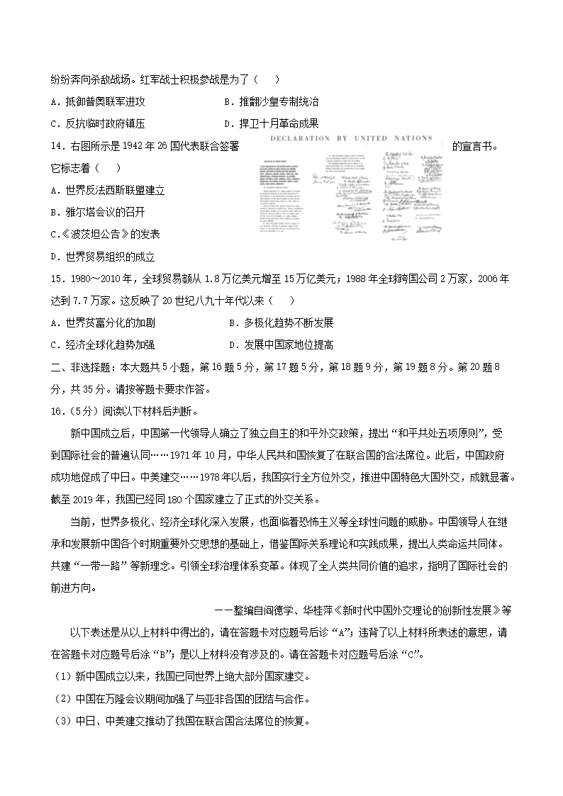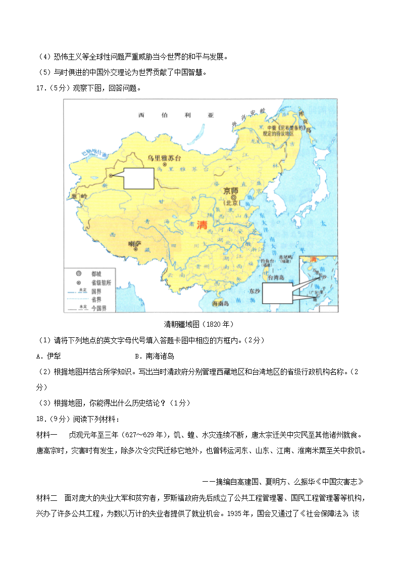 【文档名称】 2021年重庆巴南中考历史真题及答案(A卷)(Word版).doc