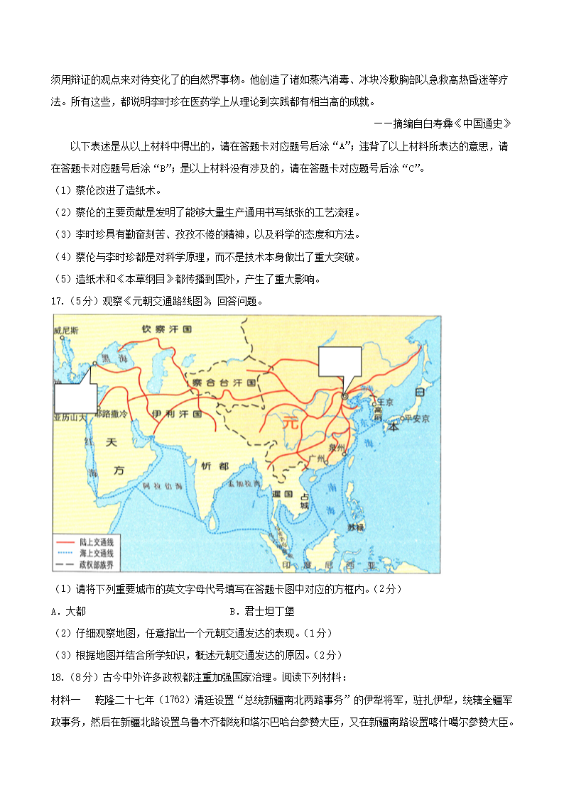 【文档名称】 2021年重庆巴南中考历史真题及答案(B卷)(Word版).doc