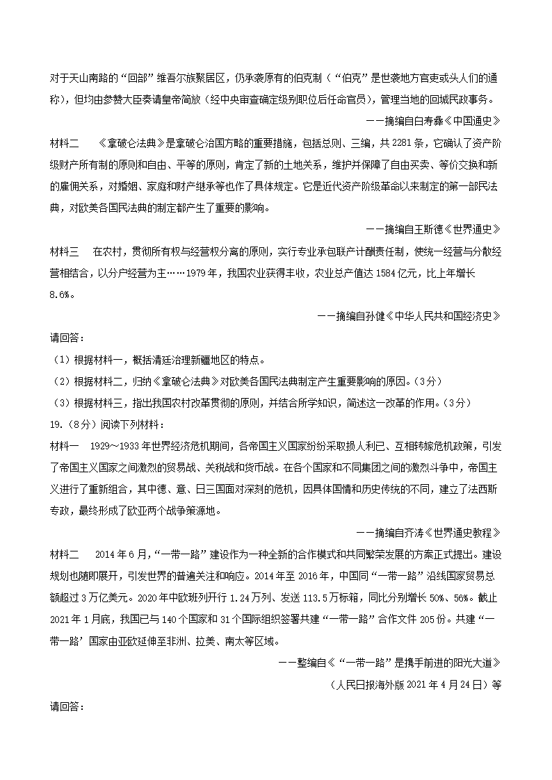 【文档名称】 2021年重庆大渡口中考历史真题及答案(B卷)(Word版).doc