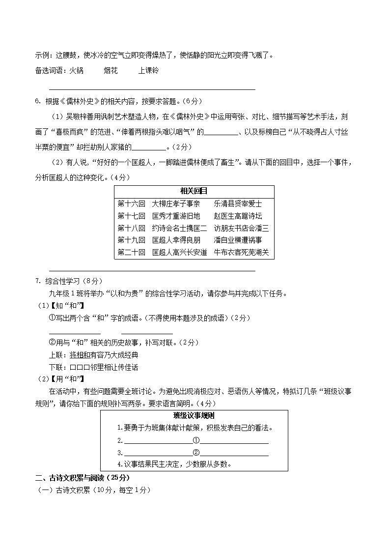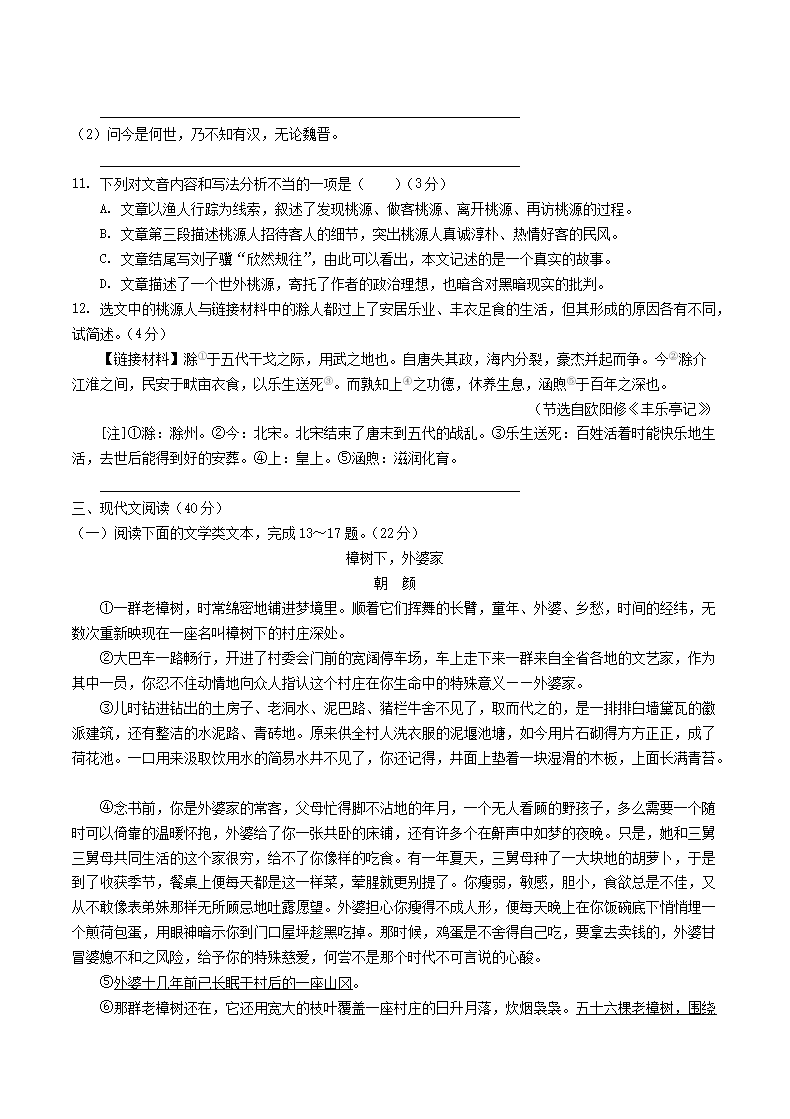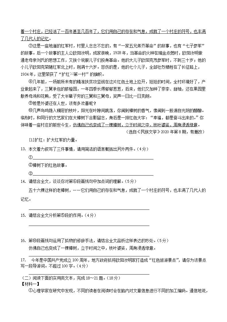 【文档名称】 2021年重庆万盛中考语文真题及答案(B卷)(Word版).doc