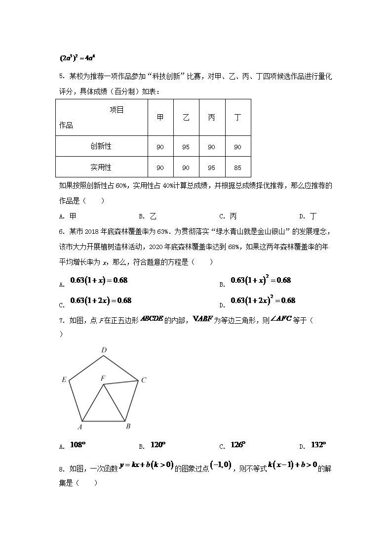【文档名称】 2021年福建福州中考数学试题及答案(Word版).doc