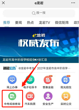 2021年福建龙岩中考成绩查询入口已开通,考生可以登录e龙岩,进入中考成绩查询栏目,凭考生本人姓名、报名号、准考证号登录查询成绩。