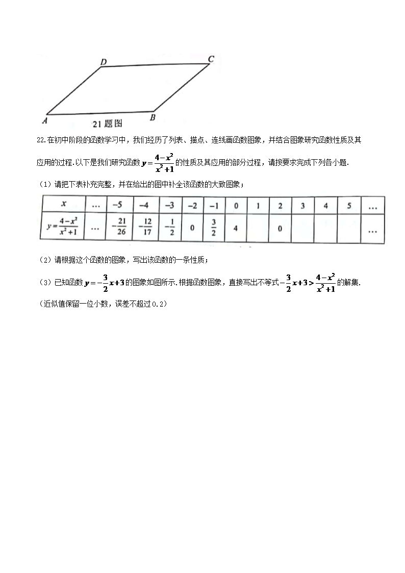 【文档名称】 2021年重庆南川中考数学真题及答案(A卷)(Word版).doc