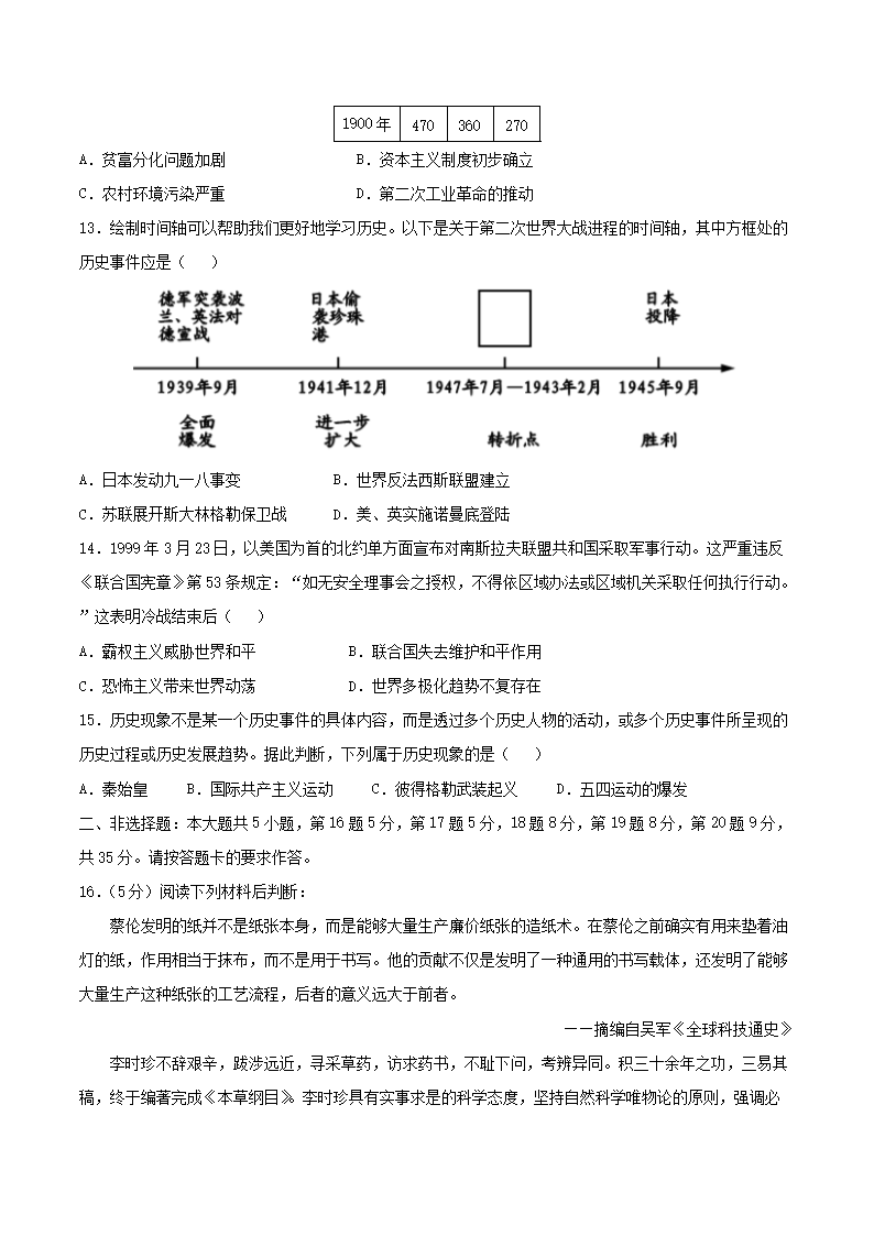 【文档名称】 2021年重庆长寿中考历史真题及答案(B卷)(Word版).doc