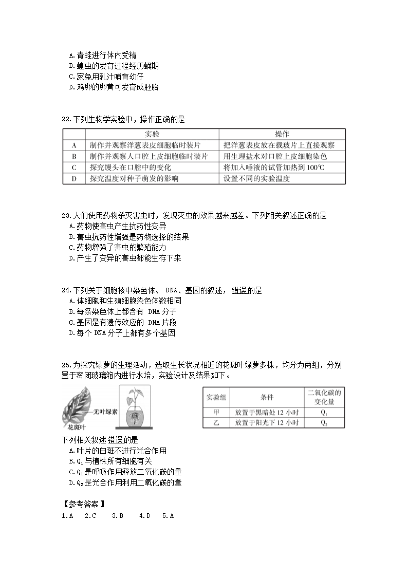 【文档预览】 无忧考网整理发布2021年福建龙岩中考生物试题及答案(Word版),前五页预览如下: