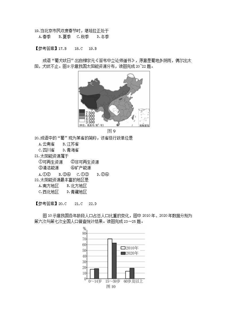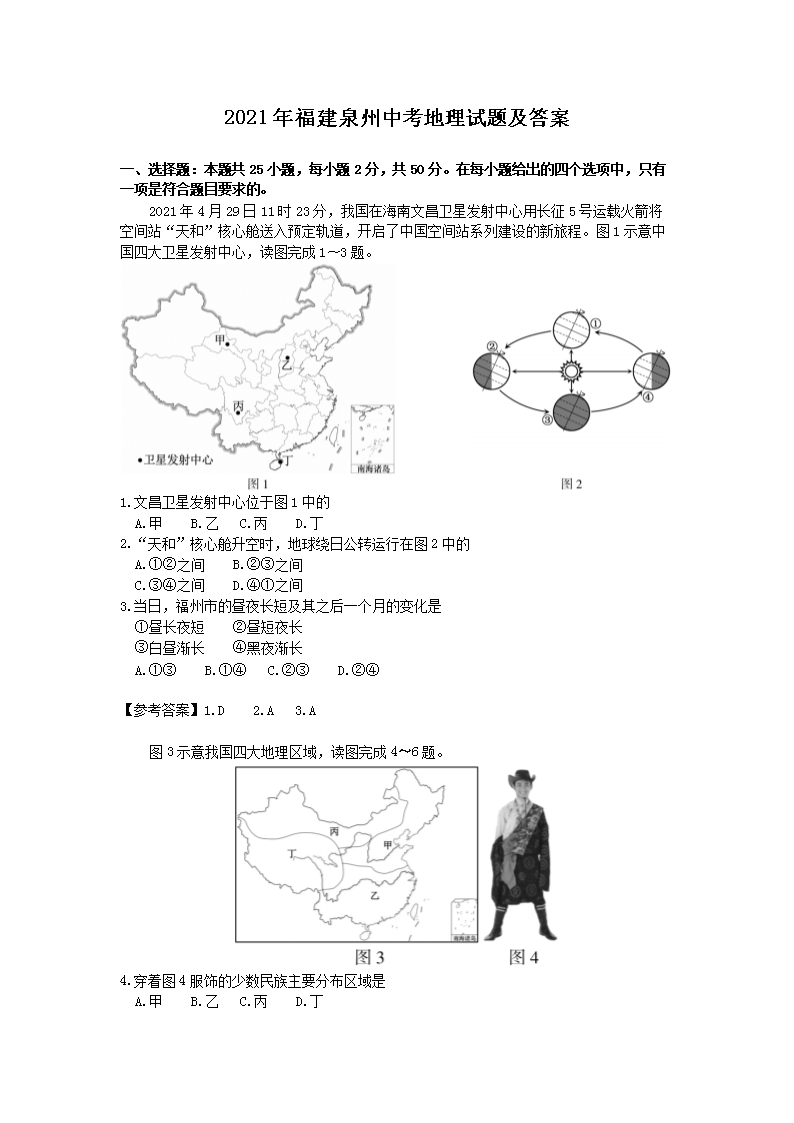 【文档名称】 2021年福建泉州中考地理试题及答案(Word版).doc