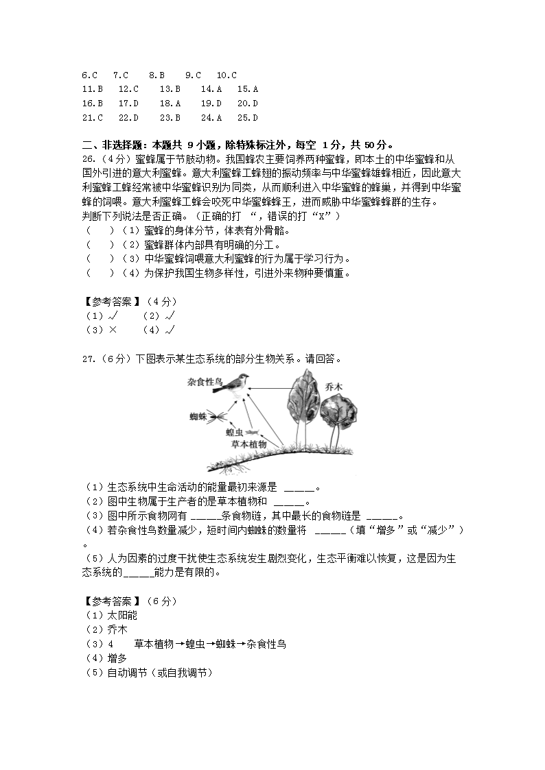 【文档预览】 无忧考网整理发布2021年福建漳州中考生物试题及答案(Word版),前五页预览如下: