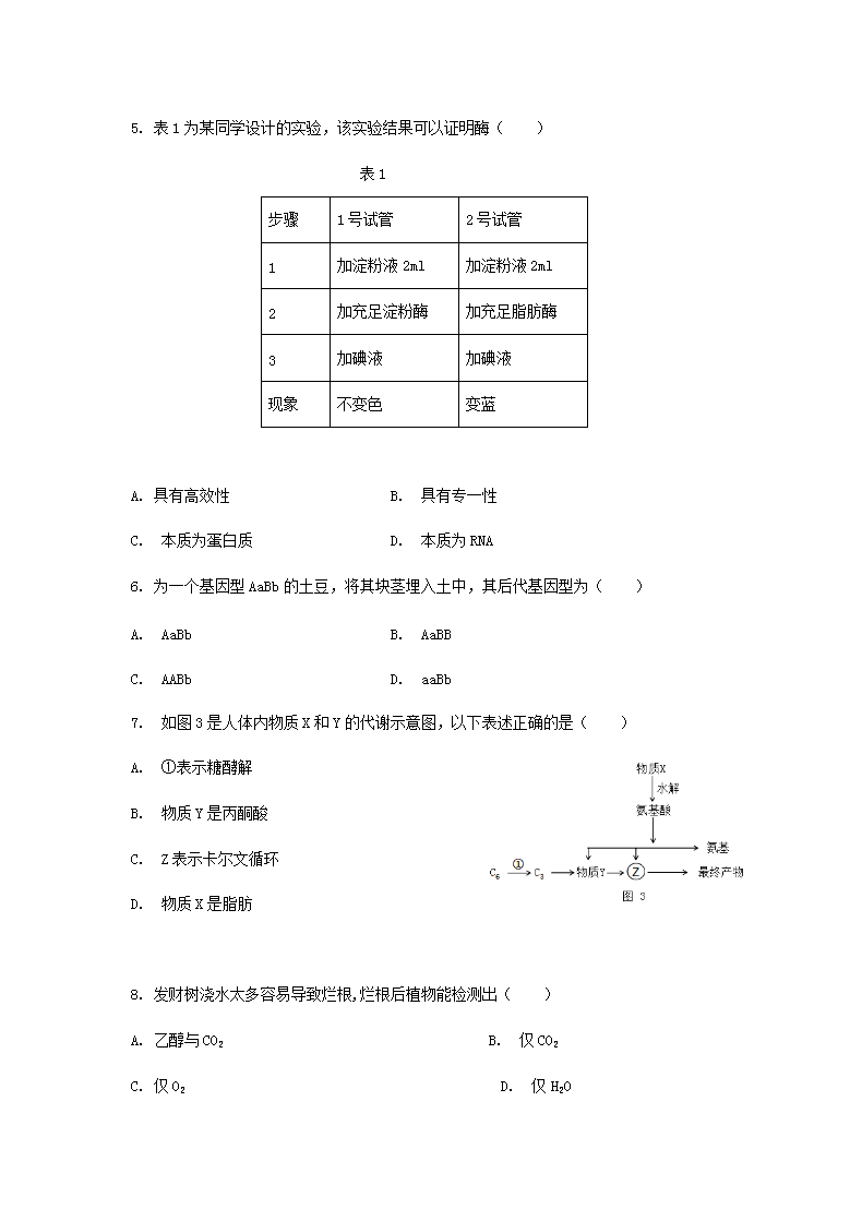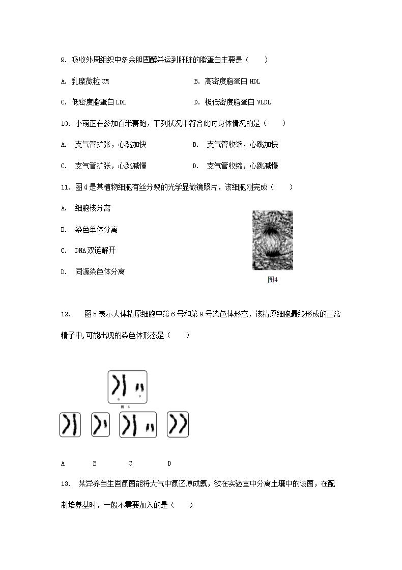 【文档名称】 2020年上海普通高中会考生物真题及答案(Word版).doc