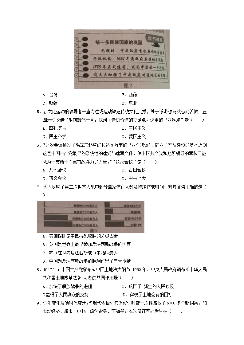 【文档预览】 无忧考网整理发布2020安徽芜湖中考历史真题及答案(Word版),前五页预览如下: