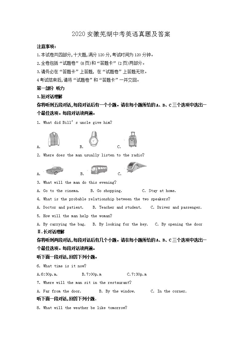 【文档名称】 2020安徽芜湖中考英语真题及答案(Word版).doc