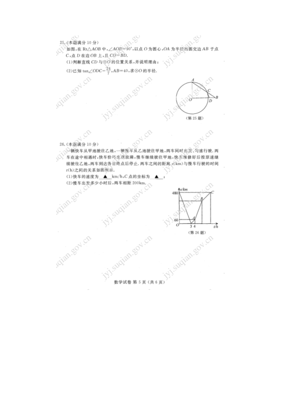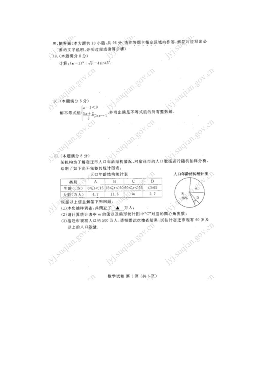 【文档预览】 无忧考网整理发布2021年江苏省宿迁市中考数学真题及答案(图片版),前五页预览如下:
