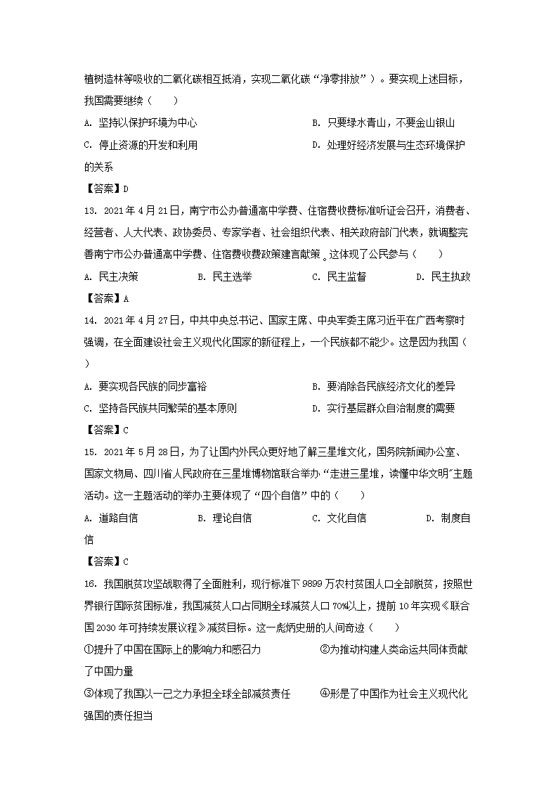 【文档名称】 2021年广西防城港中考政治真题及答案(Word版).doc