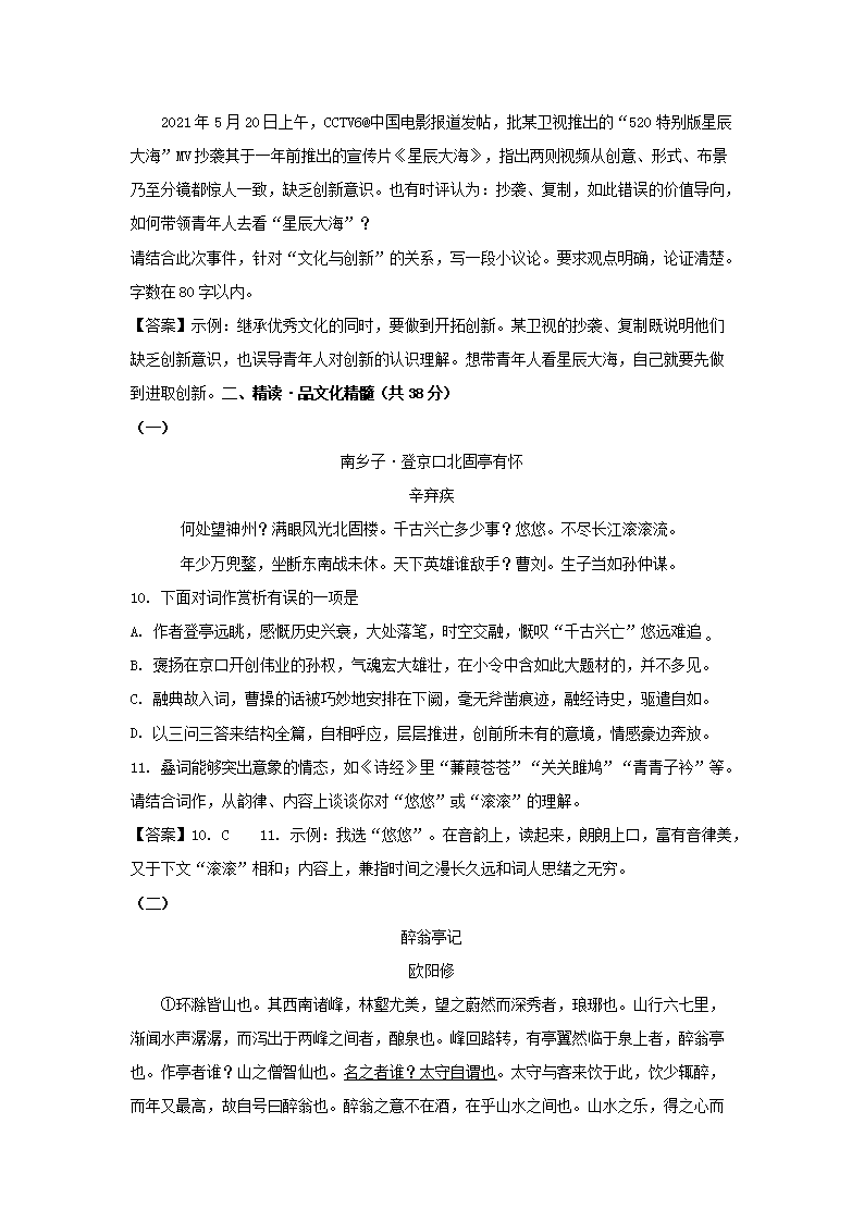 【文档名称】 2021年广西南宁中考语文真题及答案(Word版).doc