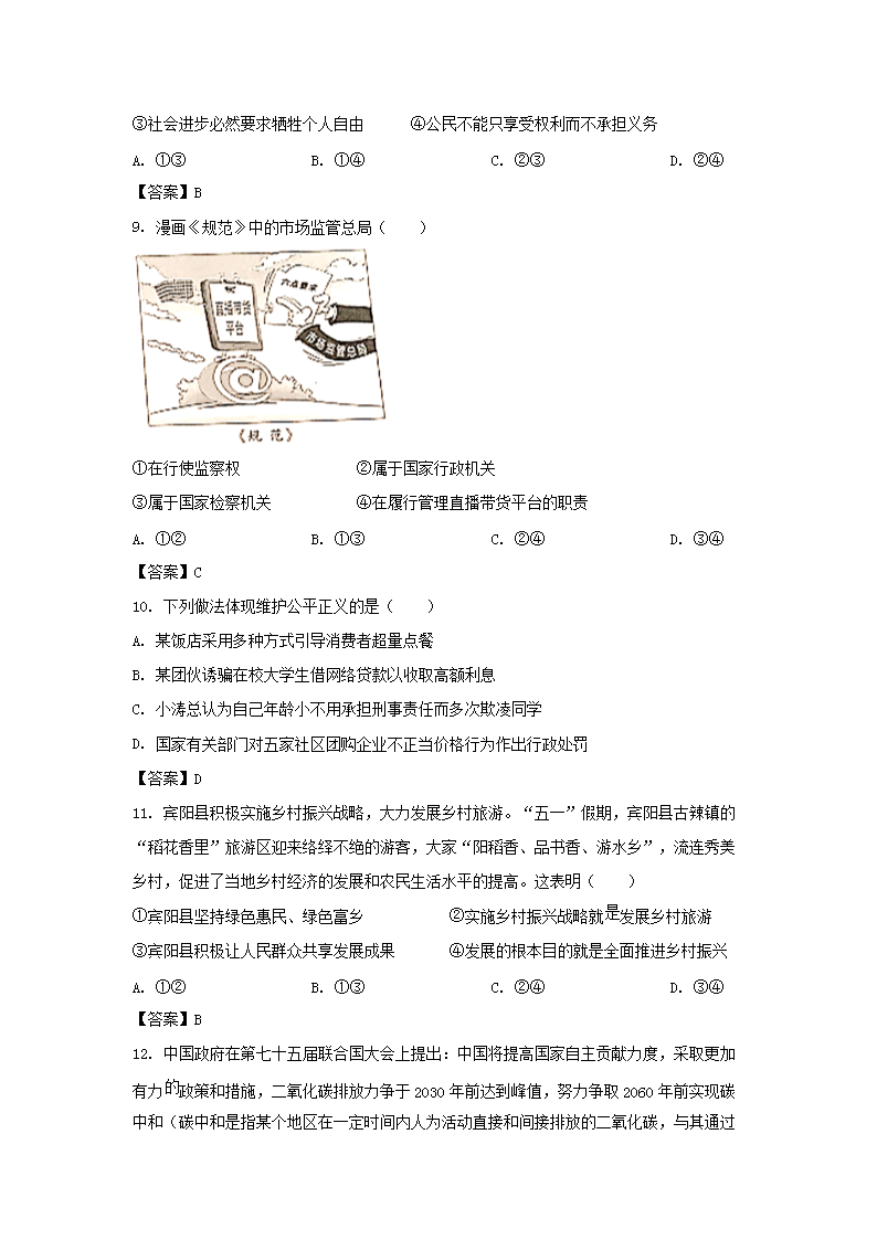 【文档名称】 2021年广西钦州中考政治真题及答案(Word版).doc