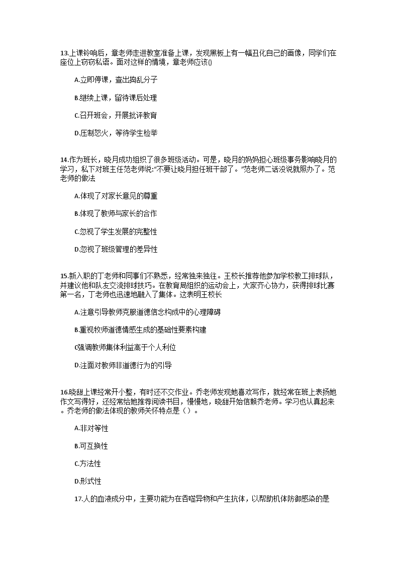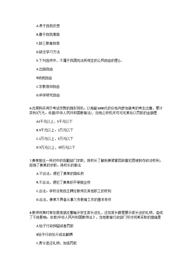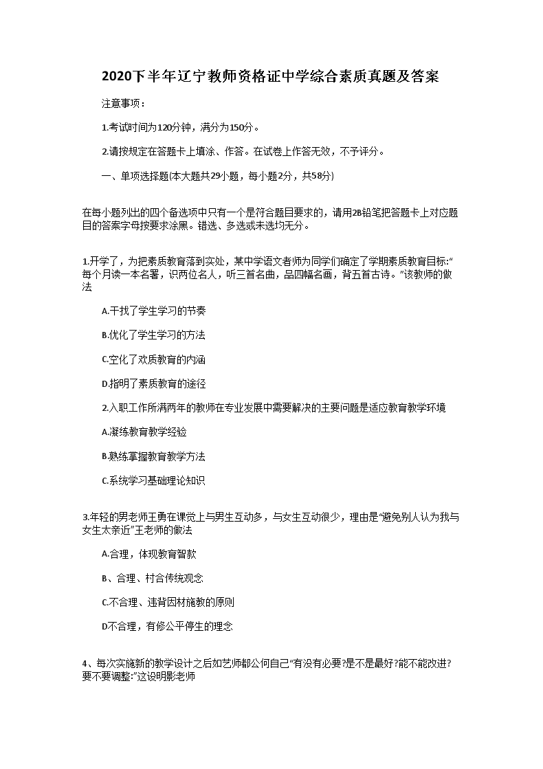 【文档名称】 2020下半年辽宁教师资格证中学综合素质真题及答案(Word版).doc