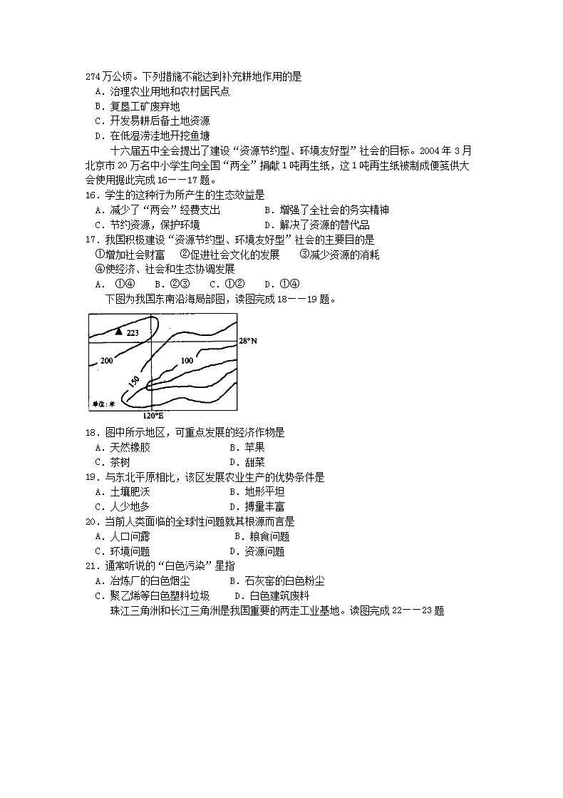【文档名称】 2007年山东普通高中会考地理真题及答案(Word版).doc