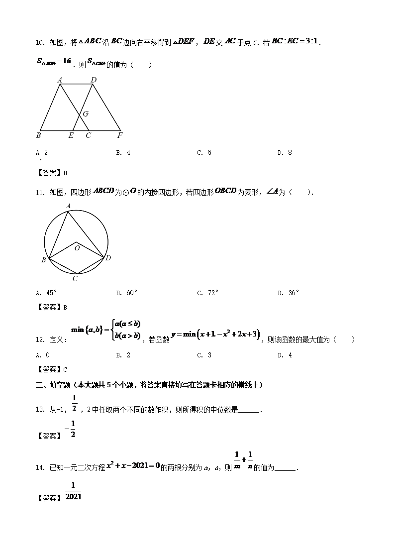 【文档名称】 2021年四川雅安中考数学试题及答案(Word版).doc