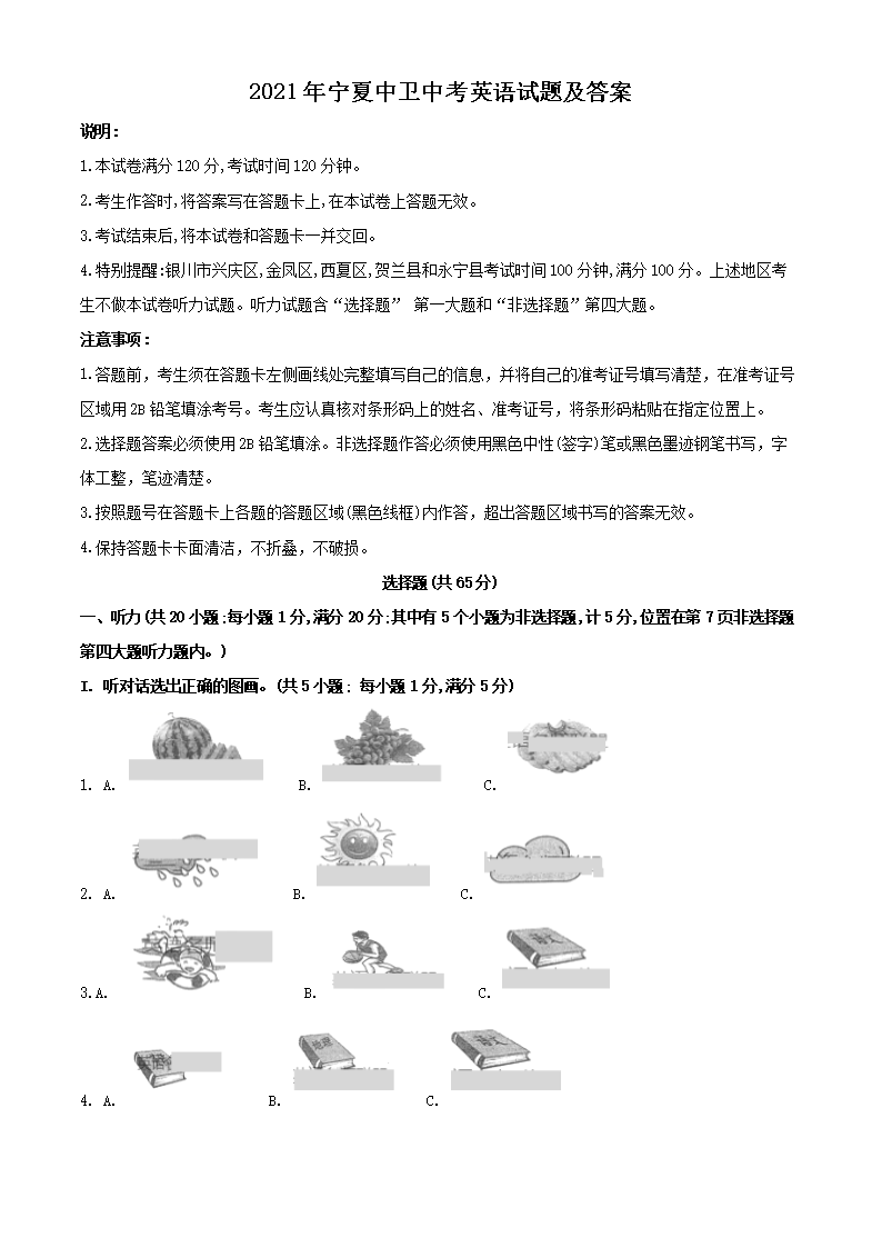 【文档名称】 2021年宁夏中卫中考英语试题及答案(Word版).doc