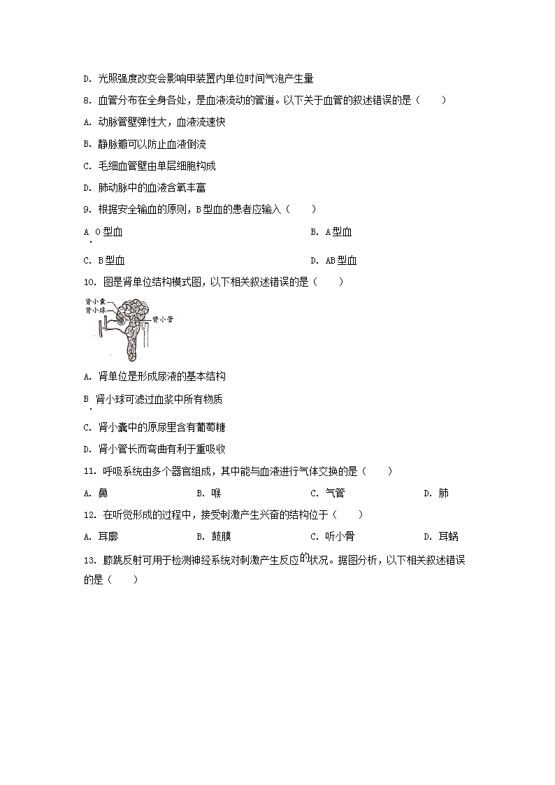 【文档名称】 2021年北京西城中考生物试题及答案(Word版).doc