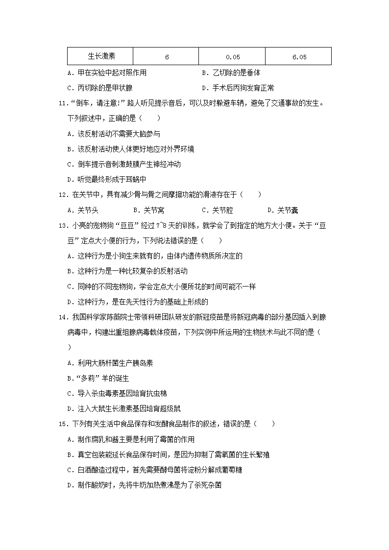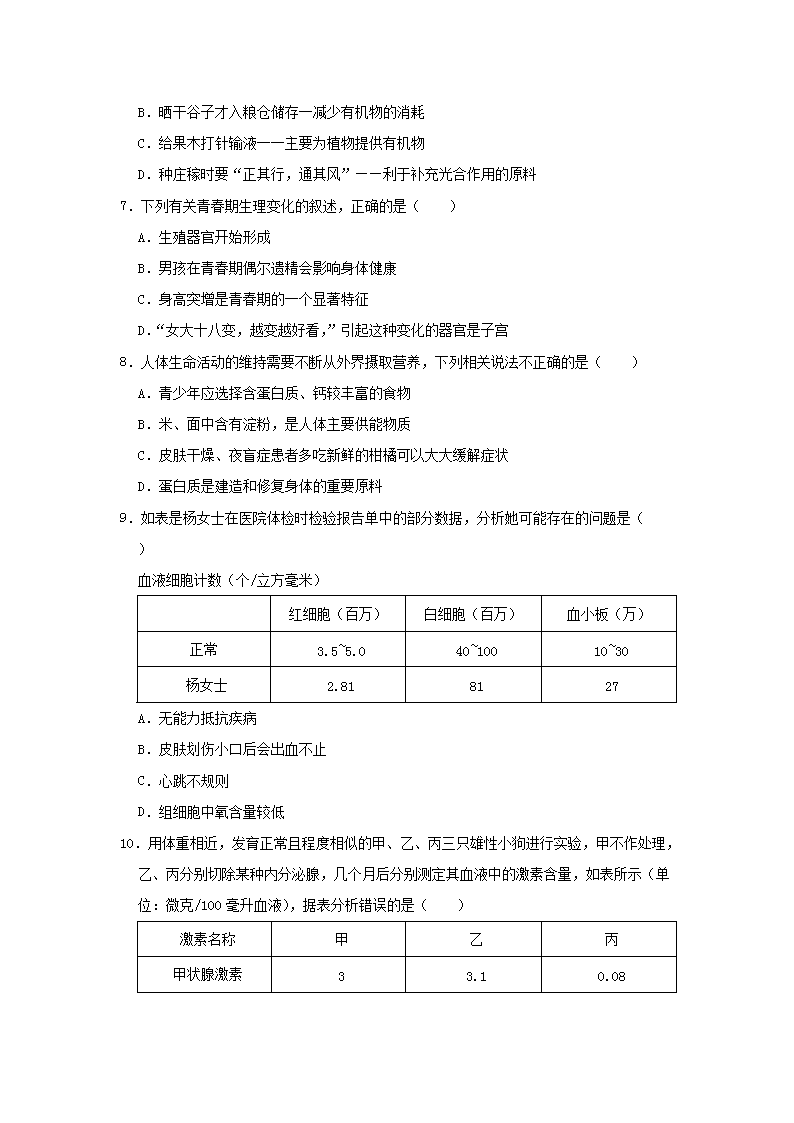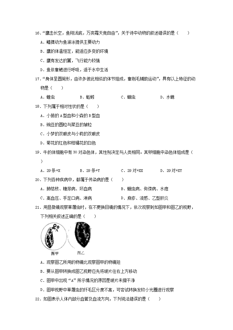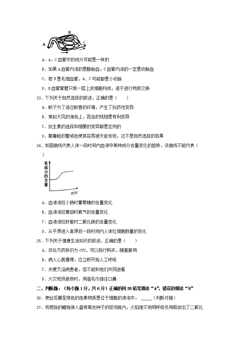 【文档名称】 2021年湖南湘潭中考生物真题及答案(Word版).doc
