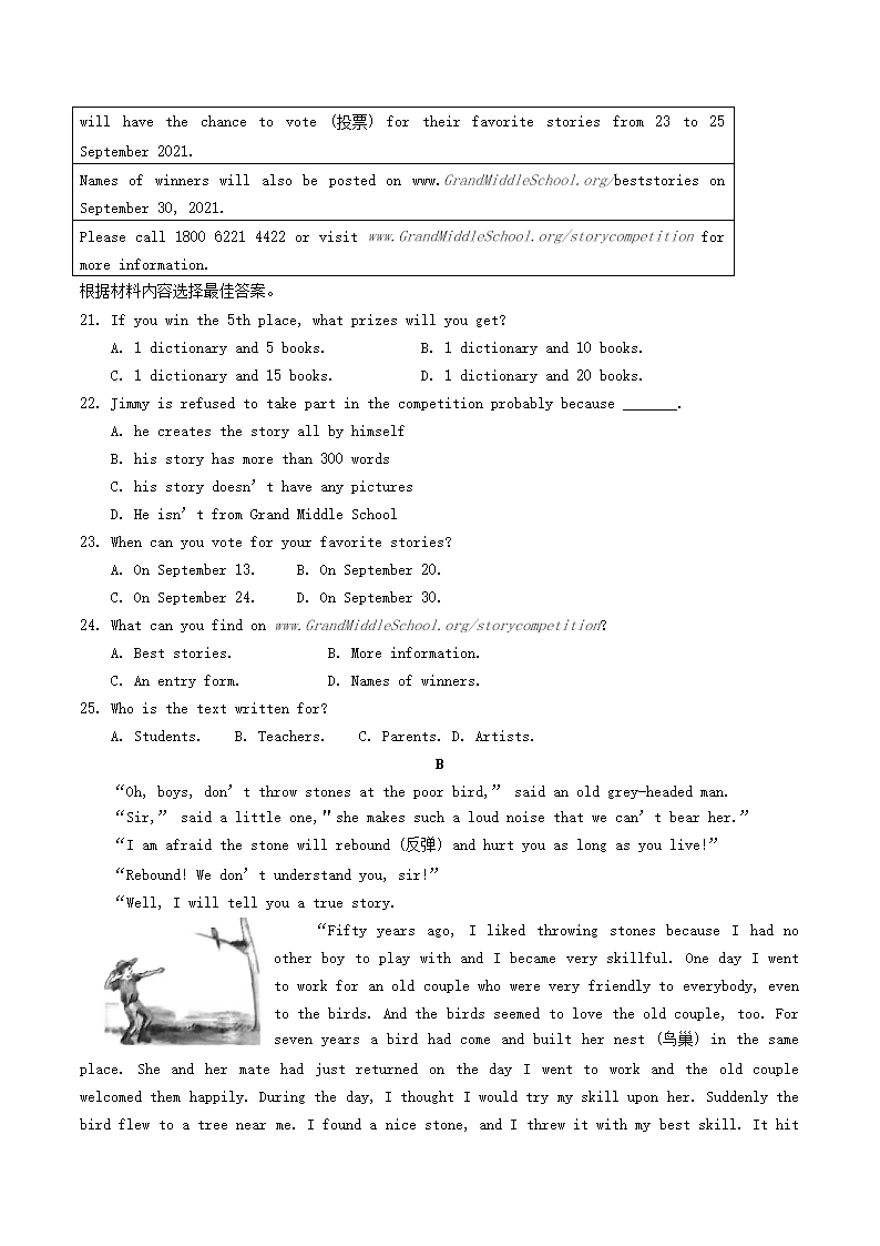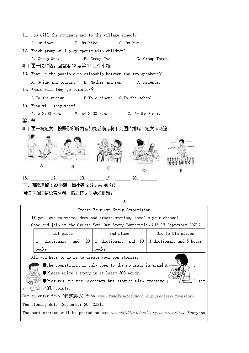 【文档名称】 2021年河南焦作中考英语真题及答案(Word版).doc