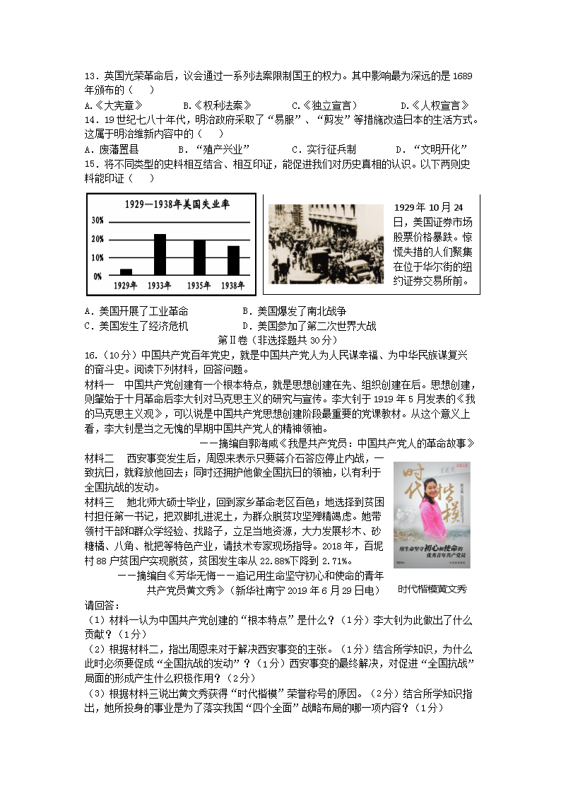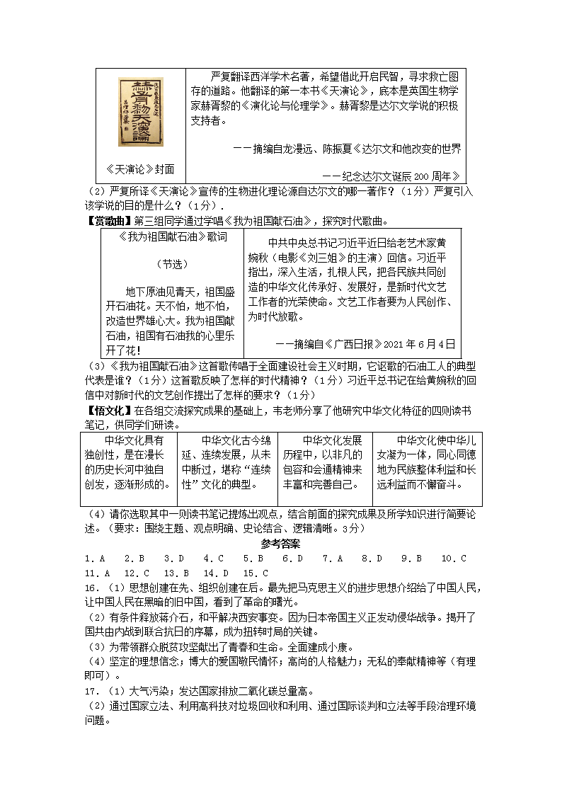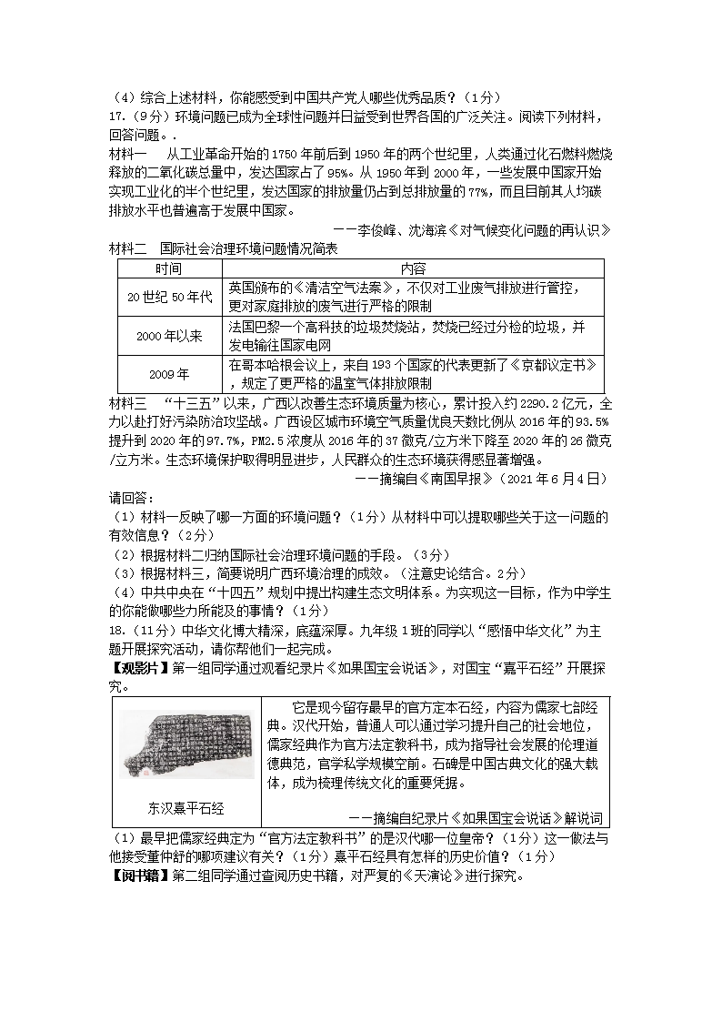 【文档名称】 2021年广西北海中考历史真题及答案(Word版).doc