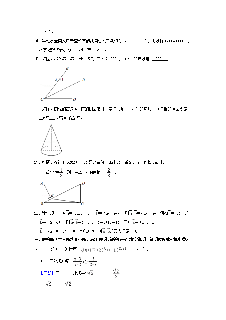 【文档名称】 2021年广西贵港中考数学真题及答案(Word版).doc