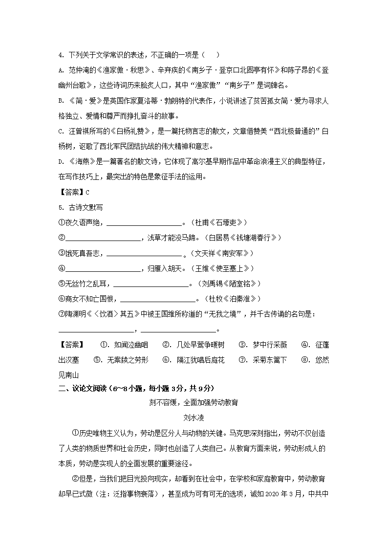 【文档预览】 无忧考网整理发布2021年广西贵港中考语文真题及答案(Word版),前五页预览如下: