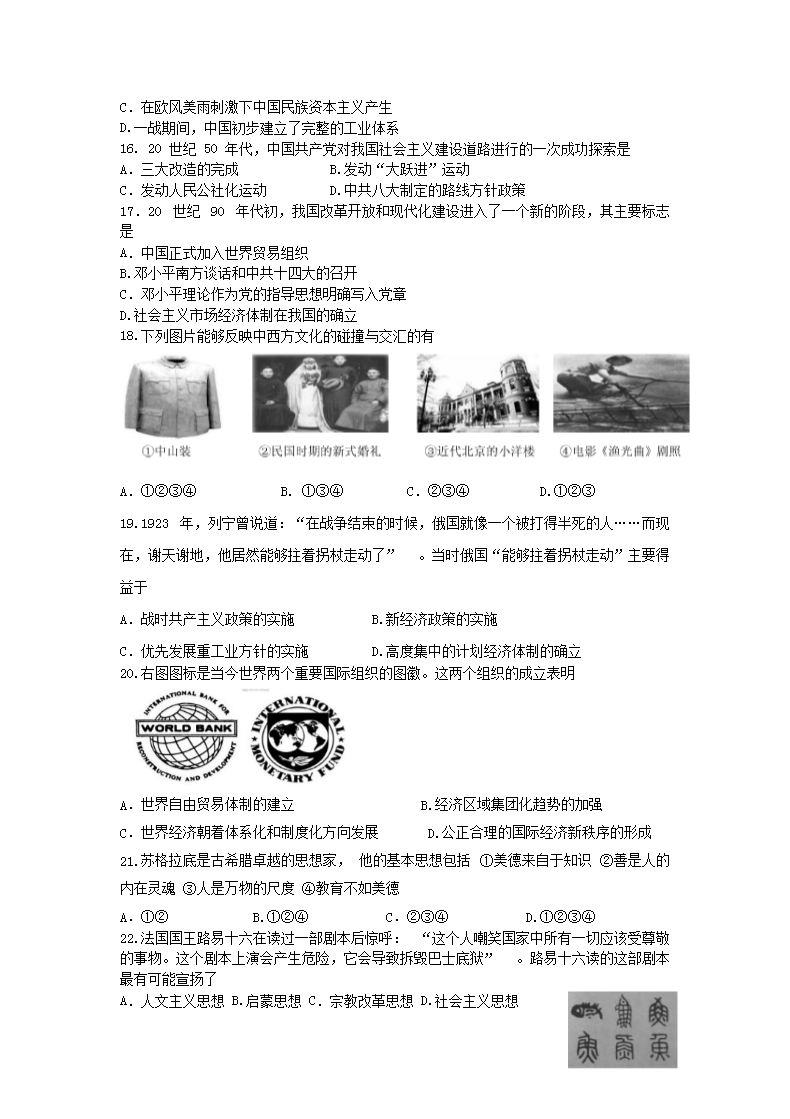 【文档名称】 2012年江西普通高中会考历史真题(Word版).doc