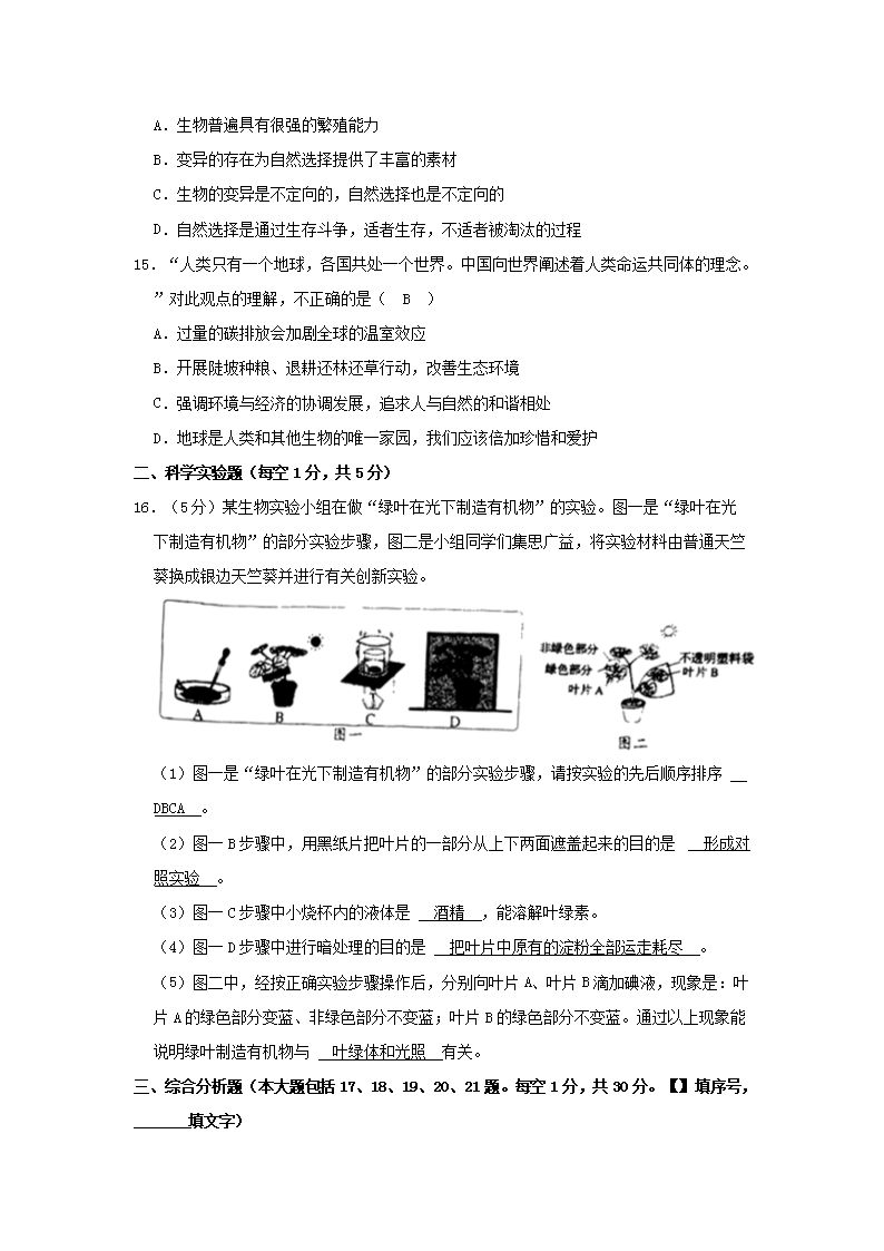 【文档名称】 2021年辽宁省营口市中考生物真题及答案(Word版).doc
