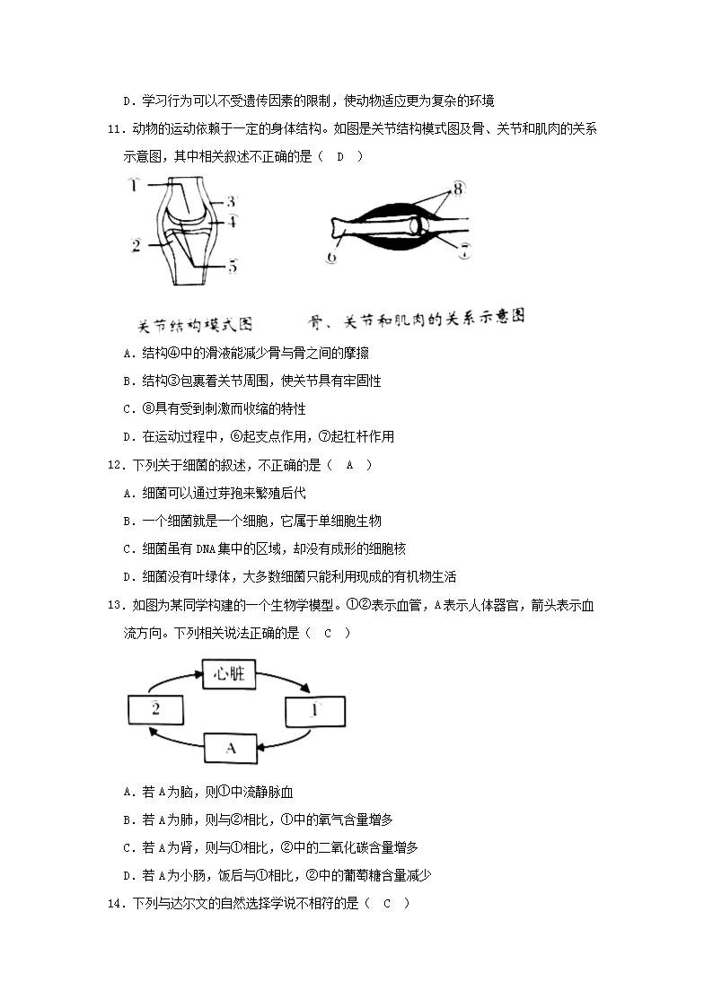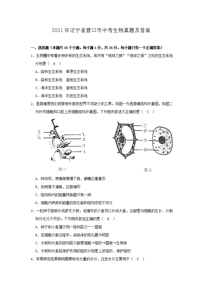 【文档预览】 无忧考网整理发布2021年辽宁省营口市中考生物真题及答案(Word版),前五页预览如下:
