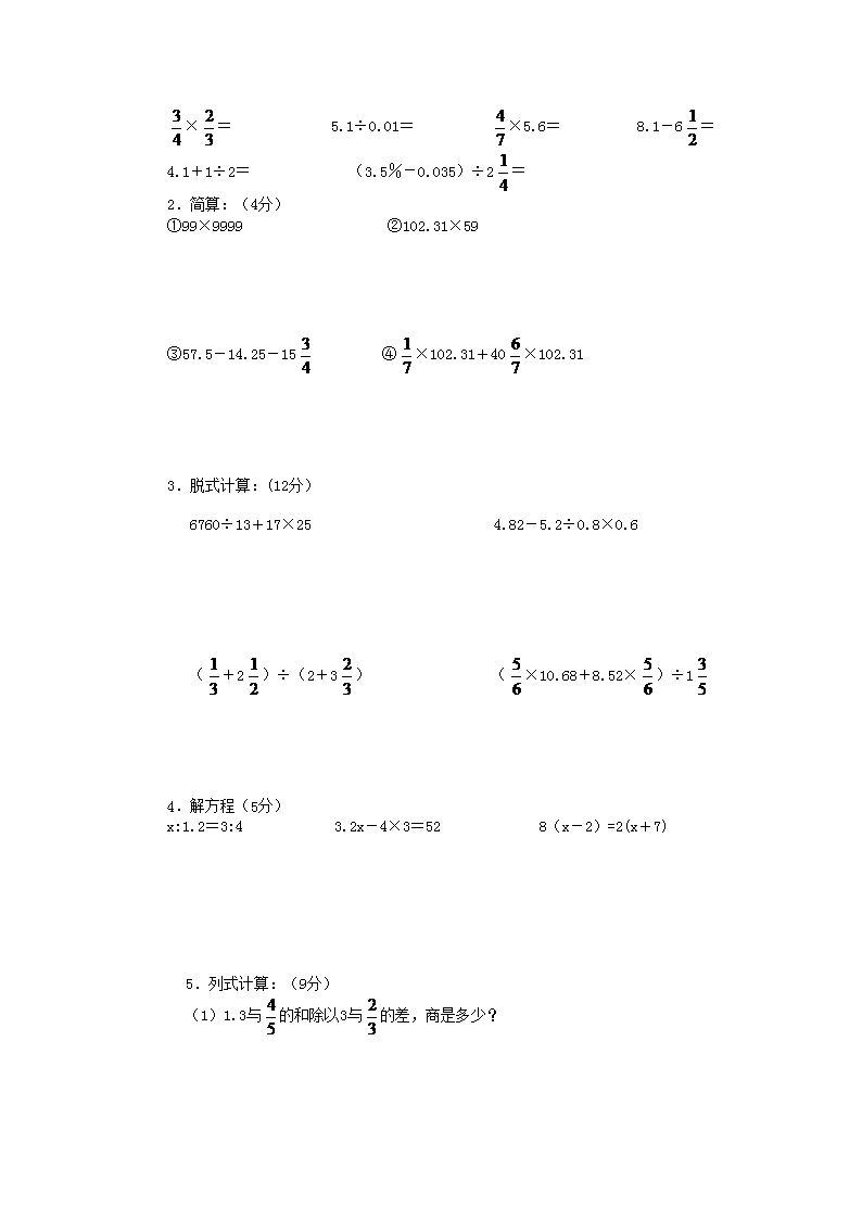 【文档预览】 无忧考网整理发布2015年河南郑州市小升初数学真题及答案(Word版),前五页预览如下: