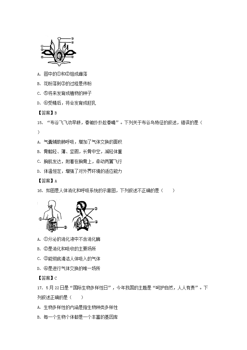 【文档预览】 无忧考网整理发布2021年山东省青岛市中考生物真题及答案(Word版),前五页预览如下: