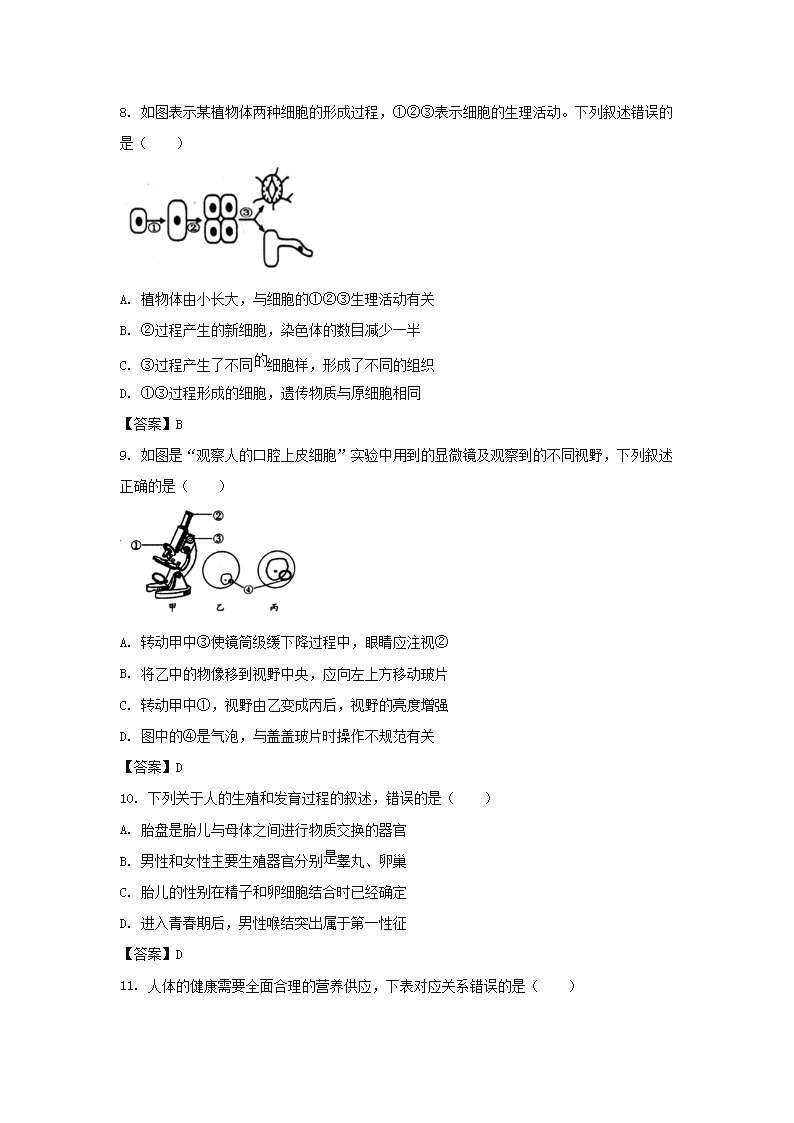 【文档名称】 2021年山东省青岛市中考生物真题及答案(Word版).doc