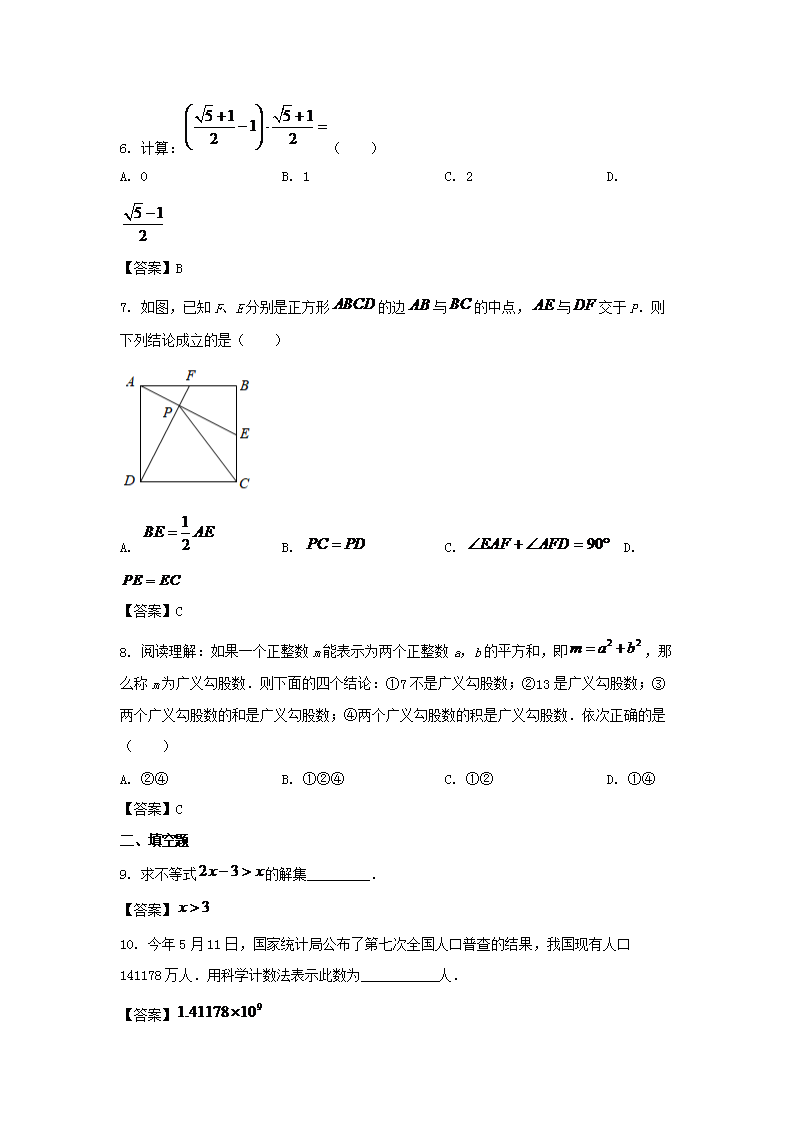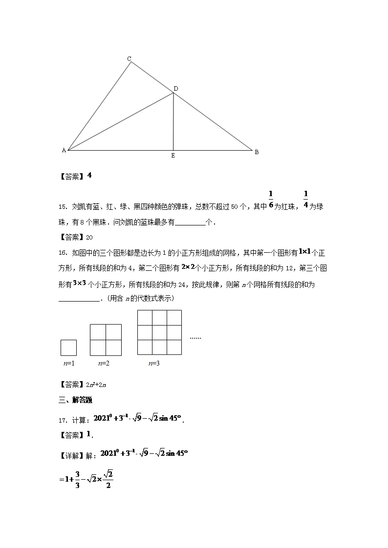 【文档名称】 2021年湖南常德中考数学试题及答案(Word版).doc