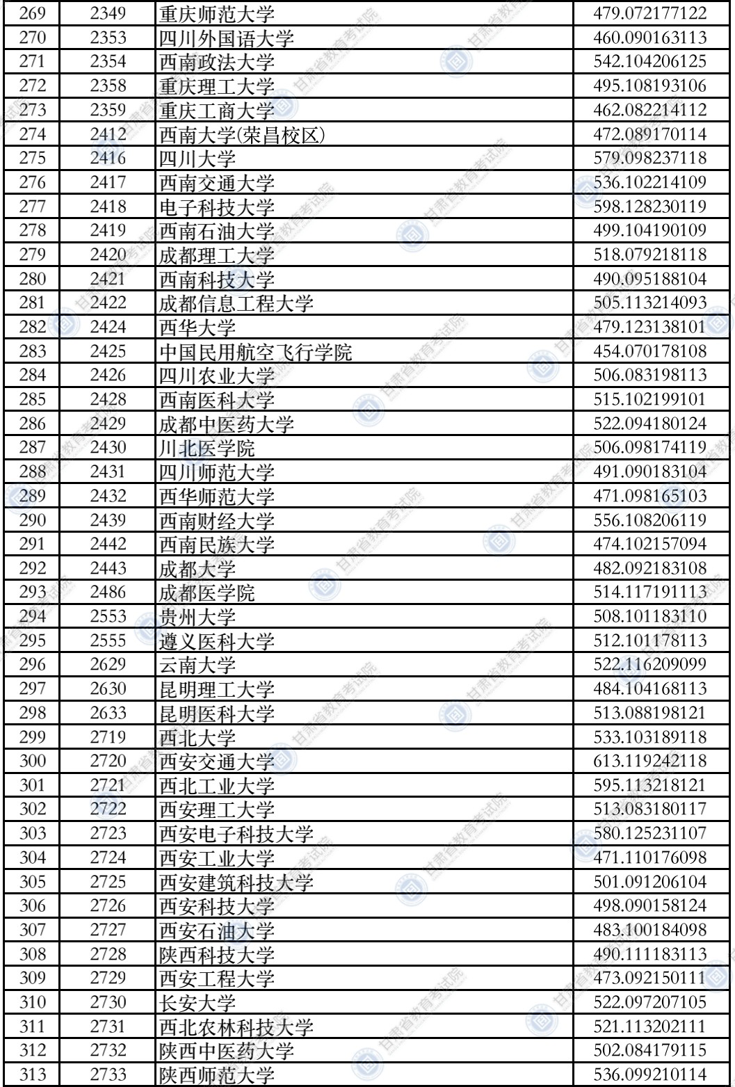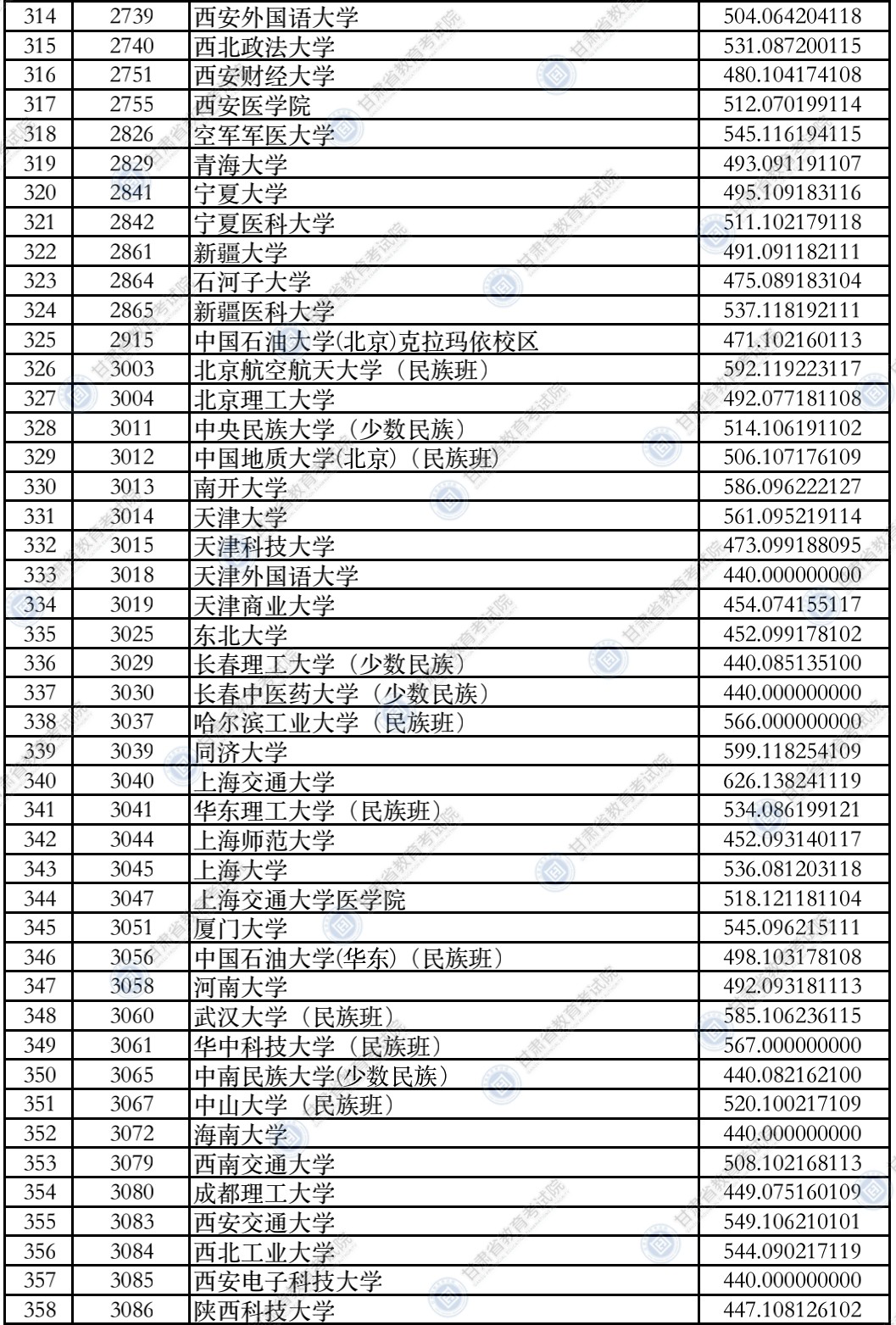 3.部分院校有多种招生类型,同一所院校会出现不同的投档最低分,具体请根据院校代号对照《2021年甘肃省普通高等学校招生专业目录》。