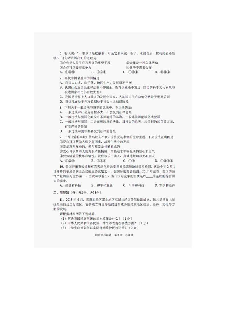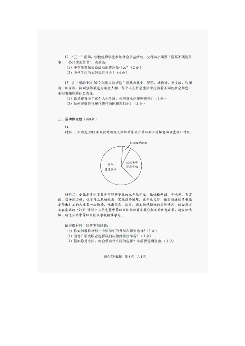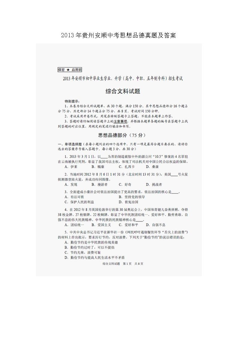 【文档名称】 2013年贵州安顺中考思想品德真题及答案(图片版).doc