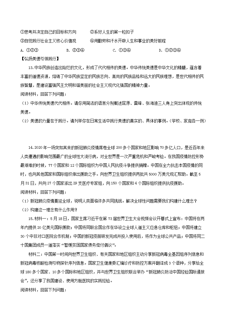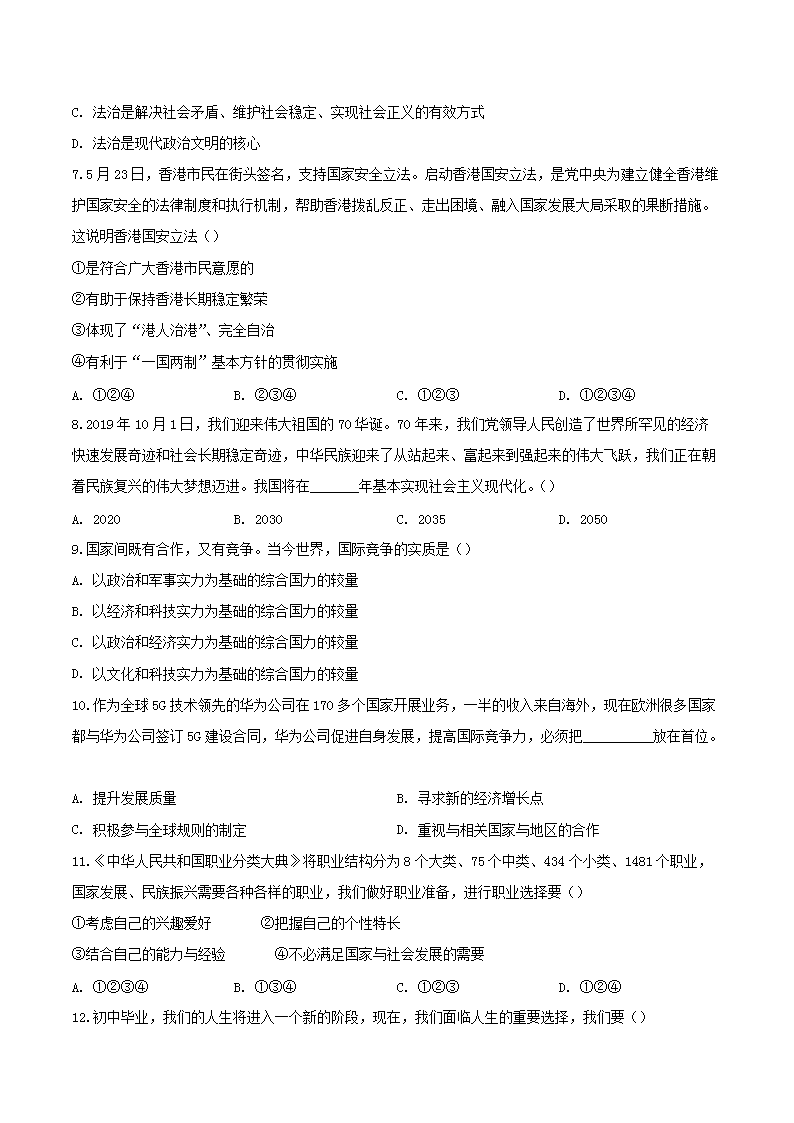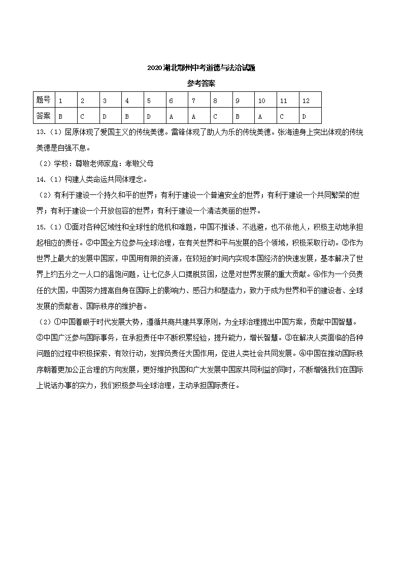 【文档名称】 2020年湖北省鄂州市中考道德与法治真题及答案(Word版).doc