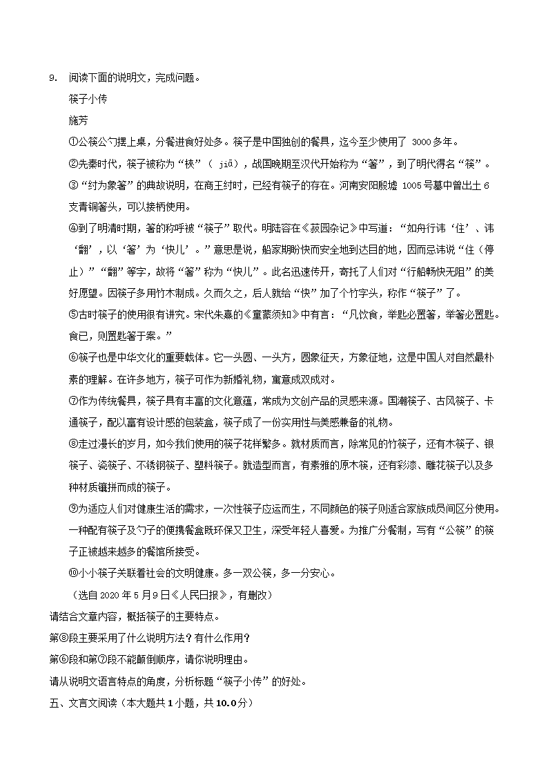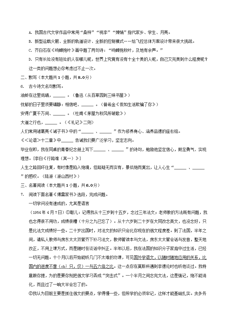 【文档名称】 2020年湖北省恩施州中考语文真题及答案(Word版).doc