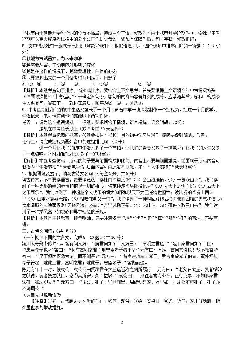 【文档预览】 无忧考网整理发布2020年湖北省黄石市中考语文真题及答案(Word版),前五页预览如下: