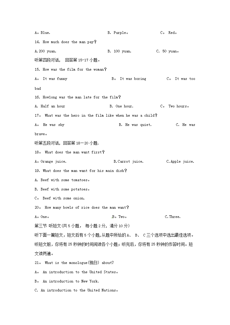 【文档预览】 无忧考网整理发布2015年广东省茂名市中考英语真题及答案(Word版),前五页预览如下: